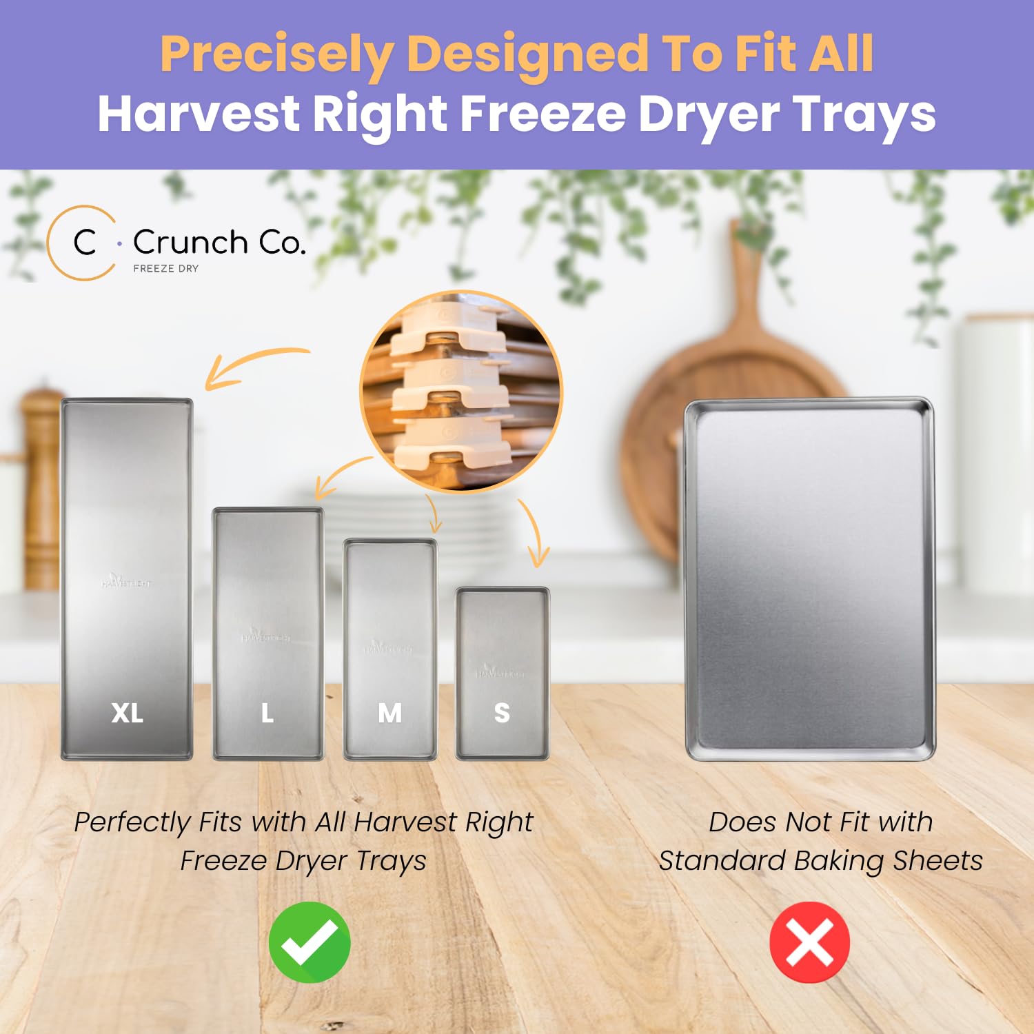 Universal Compatibility: Designed to fit all Harvest Right tray sizes—Small, Medium, Large, and XL—with rolled edges. Whether you're freeze-drying small batches or large loads, our stackers offer a secure fit and seamless stacking.